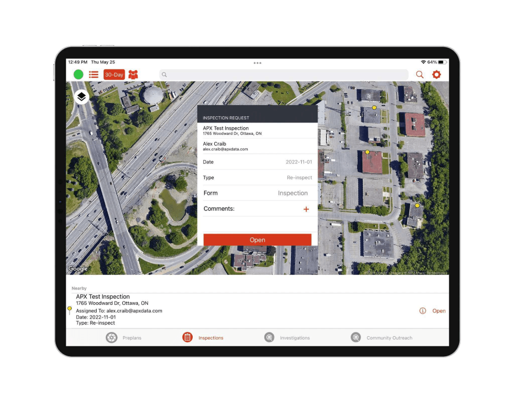 Easily schedule, manage, complete and share building inspections from the field. Violations are automatically linked to the proper fire code. Automatically schedule re-inspections. Enforce compliance and promote life safety.