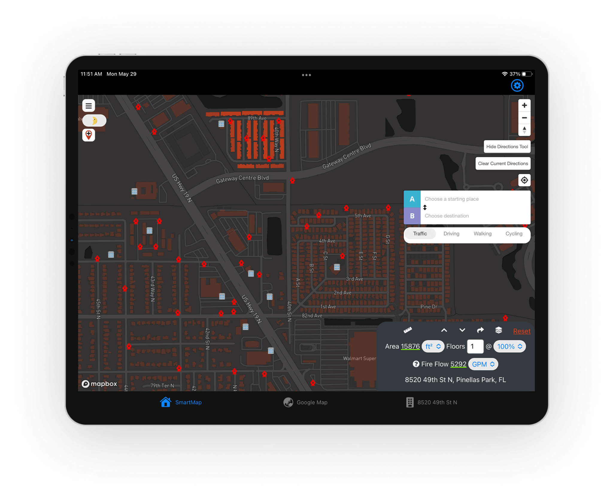 Perform a size up before leaving the station! View critical information on virtually all buildings in your response area including location, size, fire flow, nearest hydrants and more. Available on ANY mobile device!