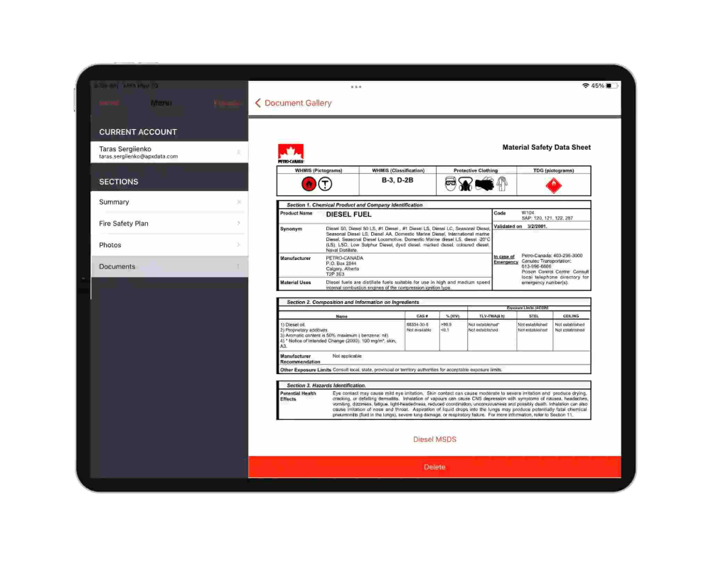 The application works both online and offline, allowing personnel to continue working without interruption. Once a connection is re-established, the application will sync to the cloud database.